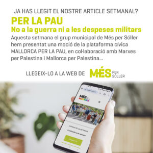 Per la pau. No a la guerra ni a les despeses militars 30 de gener 2026 Aquesta setmana el grup municipal de Més per Sóller